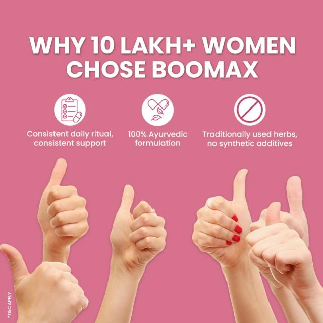 Take 1 capsule of Ayuvya Boomax after breakfast and 1 after dinner with water, or as directed by your physician.